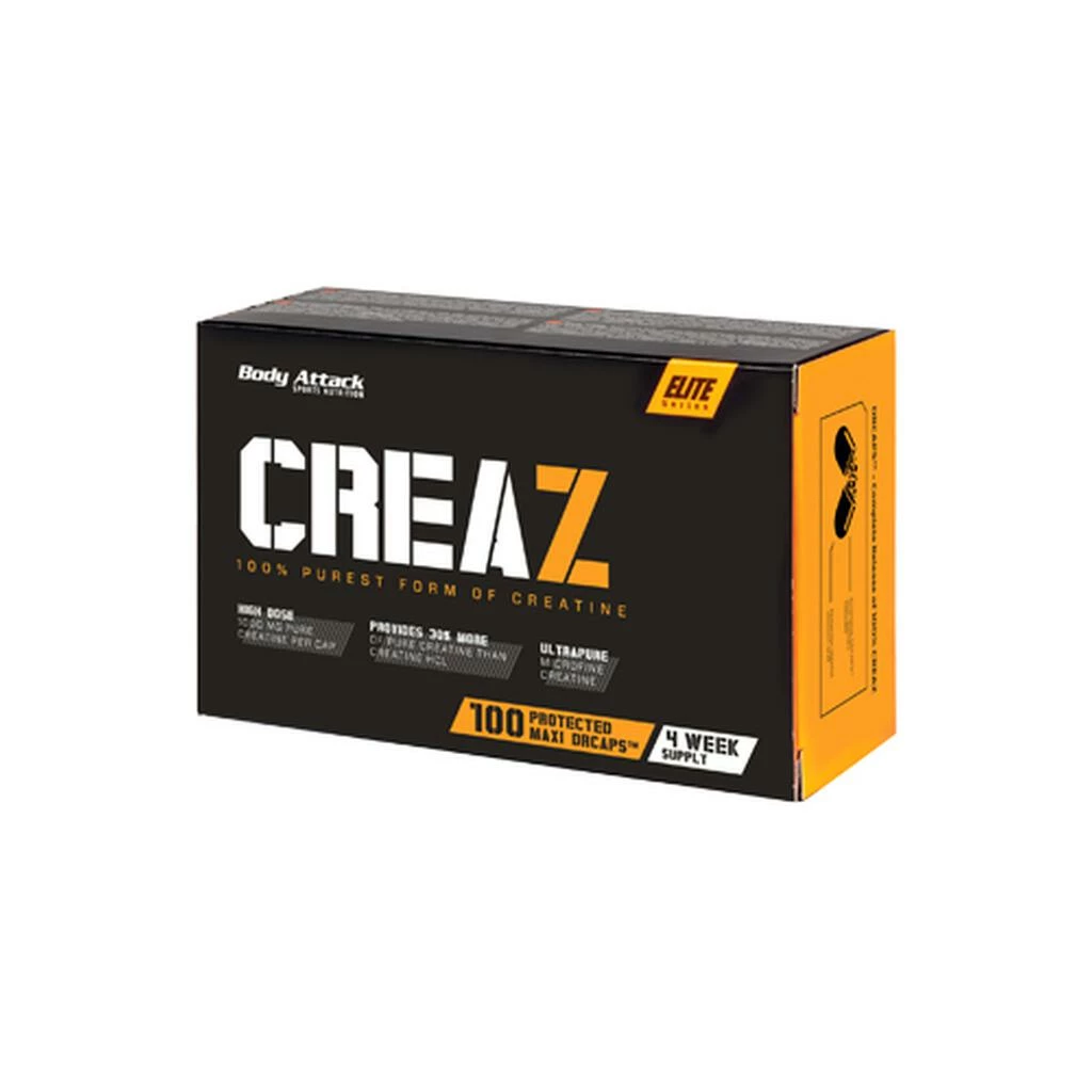 Wie erhöhst du deine Trainingsintensität? Mit ordentlich Zündstoff vor den Einheiten: Hier wartet wertvolles Muskelbenzin auf dich. Von Body Attack bereitgestellt – ganz praktisch in Kapsel- statt Kanister-Form. CREAZ ATP® ist der Leistungsgigant unter den Kreatin-Lieferanten. Die patentierte CREAZ®-Formliefert dir 100% reinsten Wirkstoff. ATP als zusätzlicher Energielieferant heizt deinen Muskelantrieb richtig ein. Feuerlöscher dabei, falls der Bizeps brennt?