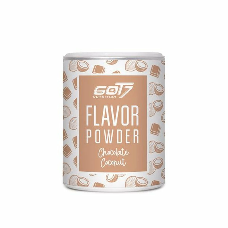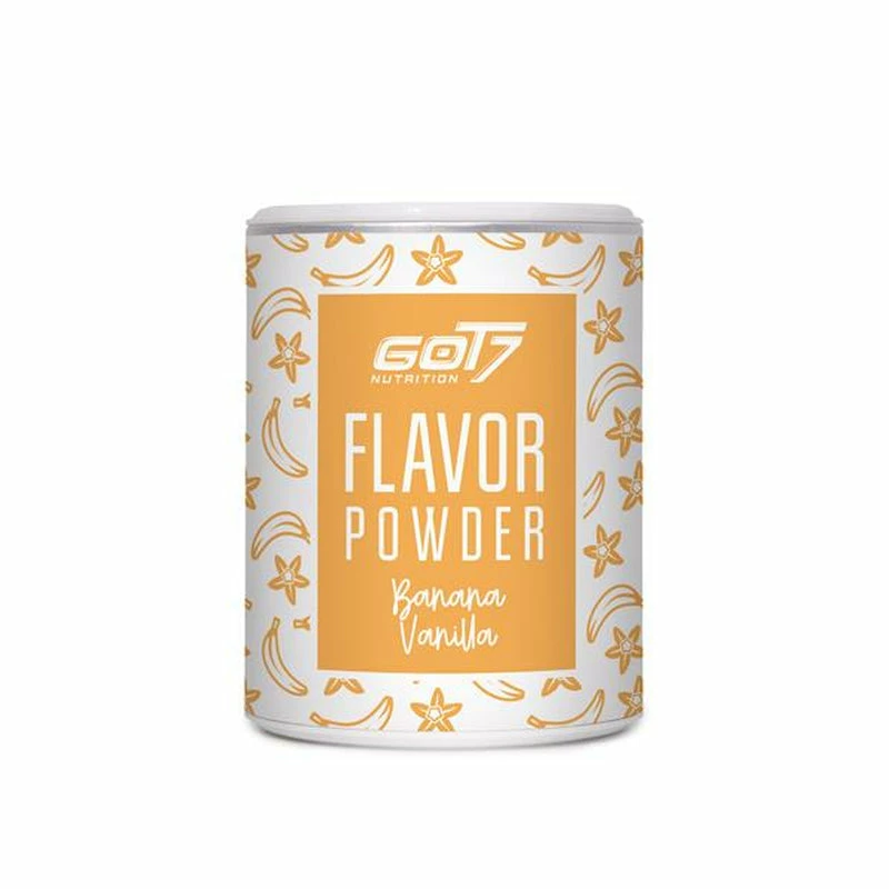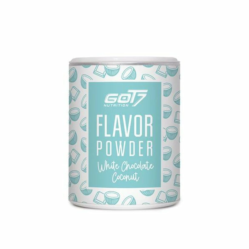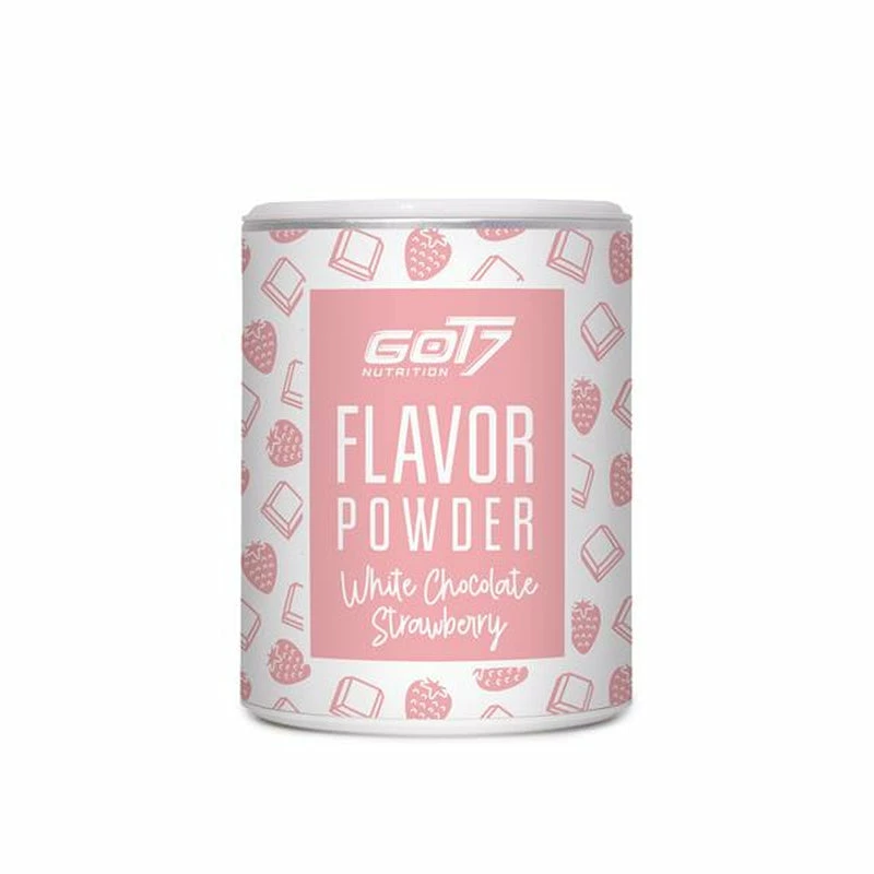 DER GESCHMACKSKICK FÜR DEIN MÜSLI, PORRIDGE, QUARK, KUCHEN Die GOT7 Flavor Powder sind in 16 verschiedenen Geschmäckern erhältlich: Banana Vanilla, Nougat, Vanilla, Cheesecake, Chocolate Coconut, Chocolate, Hazelnut, Raspberry, Peach, Mango, White Chocolate Almond, Strawberry, White Chocolate Strawberry, Cherry Cream, White Chocolate Coconut, Banana.
