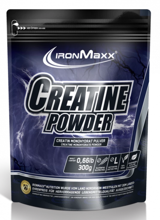 Kreatin Pulver (Creatin Powder) ist das Power-Basic-Supplement für jeden, der es mit seinem Workout ernst meint! Eines der meistverkauften Nahrungsergänzungsmittel für Bodybuilder und Athleten. Die europäische Behörde für Lebensmittelsicherheit (EFSA*) bestätigt die Wirkung von Kreatin: Es führt im Rahmen kurzzeitiger intensiver körperlicher Betätigung zu einer Erhöhung der körperlichen Leistung bei Schnellkrafttraining ab einer täglichen Dosierung von mindestens 3g am Tag! Das Kreatin Pulver von IronMaxx® ist von 100 % hochwertiger Qualität.
