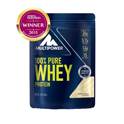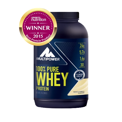 Multipower’s 100% Pure Whey Protein versorgt Dich mit 80% reinstem Molkenprotein aus drei Quellen – Isolat, Konzentrat und Hydrolysat. Es wird die reinste Form verwendet – Molkenproteinisolat – als Hauptzutat, um in jede Portion 24g hochwertigsten Proteins (inkl. 5,7g BCAAs und 3,8g L-Glutamine) bei lediglich 1,4g Kohlenhydraten zu packen.