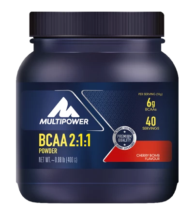 Inhaltsstoffe: Verzweigtkettige Aminosäuren (30% L-Leucin, 15% L-Valin,15% L-Isoleucin), Maltodextrin, Säuerungsmittel Citronensäure, Säureregulator Trinatriumcitrat, Aroma, Süßungsmittel Acesulfam K ; Sucralose, Palmöl, Trennmittel Siliciumdioxid, Farbstoff Azorubin. (Kann die Aktivität und Aufmerksamkeit bei Kindern beeinträchtigen). Kann Spuren von Ei, Milch und Soja enthalten.