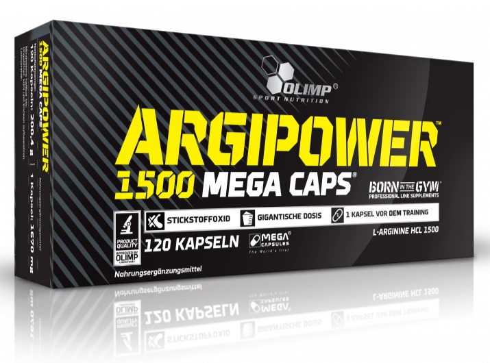 Olimp ArgiPower 1500 Mega Caps – Nahrungsergänzungsmittel. Bei diesem Produkt handelt es sich um ein Hochkonzentriertes Präparat, welches Ihre Ernährung mit freiem L-Arginin von höchster Qualität ergänzt. Dank dem ultramodernen MEGA CAPS® -Verfahren enthält jede Kapsel 1500 mg L-Arginin höchster Qualität.