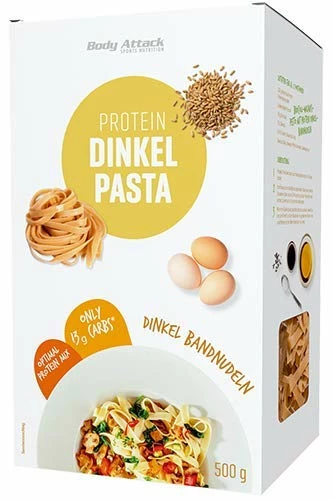 Die Protein Nudeln von Body Attack bestehend aus Dinkelgrieß und frischem Hühnerei sind eine qualitativ hochwertige und leckere Alternative für eine eiweißreiche Ernährung. Durch die Kombination der pflanzlichen und der tierischen Proteinquelle erreichen die Nudeln eine sehr hohe biologische Wertigkeit von über 100. Dazu sind die Spirelli von Body Attack sehr bekömmlich, im Handumdrehen zubereitet und lecker im Geschmack.