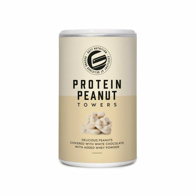 Köstliche, geröstete Erdnüsse überzogen mit leckerer Schokolade – unsere GOT7 Protein Peanut Towers sind eine absolut köstiche, knackige Nascherei, die wir für Dich mit etwas Protein angereichert haben. So kannst Du eine Nascherei genießen und tankst ganz nebenbei eine extra Ladung Eiweiß.