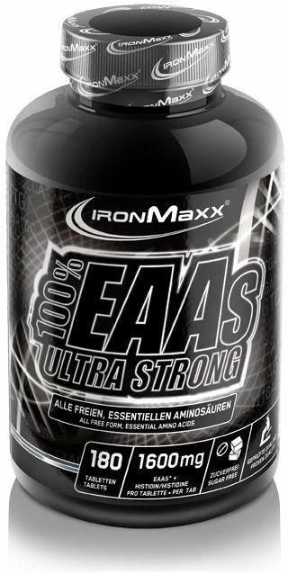 Das EAA-Supplement Ultra Strong für den Kraft- und Ausdauersportler mit klarem Ziel: 100% Bestleistung! Besonders schnell verfügbare EAA-Aminosäuren1 in hochkonzentrierter Form und praktisch als Tablette einnehmbar – vom ausgezeichneten Hersteller IronMaxx® – Qualität Made in Germany.