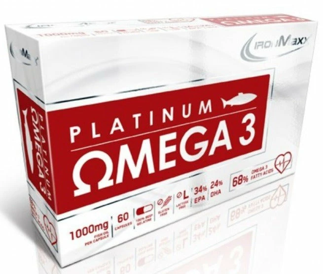 Bei Omega-3-Fettsäuren handelt es sich um essentielle Stoffe, die für den Körper überlebensnotwendig sind, da er diese Fettsäuren nicht selbst produzieren kann. Der Körper ist darauf angewiesen diesen Bedarf über hochwertige Nahrung zu decken. Als gute Quellen für die wichtigen Fettsäuren eignen sich unter anderem öle, beispielsweise aus Lein-, Hanf-, Walnuss- oder Rapsöl, aber auch Meeresfische wie Lachs, Hering, Sardellen und Makrelen weisen erhöhte Omega-3-Werte auf. Weitere Quellen können Rindfleisch sein. Hier sind die Fettsäuren aber in einem deutlich geringeren Ausmaß, als in Fischölen, enthalten. Auch gelten pflanzliche Quellen an Omega3 als weniger wertvoll als jene aus tierischem Material. Omega3 enthaltende Gerichte sollten mindestens einmal pro Woche auf einem gesunden und ausgewogenen Speiseplan stehen. Alternativ kann jeder Mensch seinen Bedarf an Omega3 durch hochwertige Nahrungsergänzungsmittel wie IronMaxx Platinum-Omega 3 decken. Im Gegensatz zu den pflanzlichen ölen gehören Omega-3-Fette aus Fischen zu den aktiveren Fettsäuren, die viel von den wertvollen Fettsäuren Eicosapentaensäure (EPA) und Docosahexaensäure (DHA) enthalten. Die IronMaxx Platinum Omega-3 Softgel Kapseln sind aus reinem Fischöl hergestellt, enthalten 1000mg pro Kapsel und bestehen aus 34% EPA und 24% DHA. Letzteres kann dazu beitragen, eine normale Gehirnfunktion und Sehkraft zu erhalten (bei einer täglichen Dosis von 250mg). EPA und DPA tragen in einer Dosierung von 250mg zu einer normalen Herzfunktion bei. Des Weiteren enthalten IronMaxx Platinum Omega 3 Kapseln keine weiteren künstlichen oder chemischen Zusätze oder Füllstoffe. Im Gegensatz zu vielen anderen Herstellern, hat IronMaxx auf den Zusatz von Vitamin E verzichtet. Dieses Vitamin ist in vielen Nahrungsmitteln und Nahrungsergänzungen enthalten, und kann bei überdosierung zu gesundheitlichen Problemen führen. Ein Mangel an Vitamin E ist äußerst unwahrscheinlich. Versorge ab sofort deinen Körper mit wertvollen und gesunden Omega-3-Fettsäuren von IronMaxx Nutrition!
