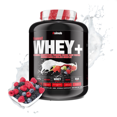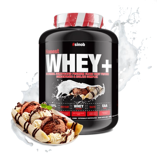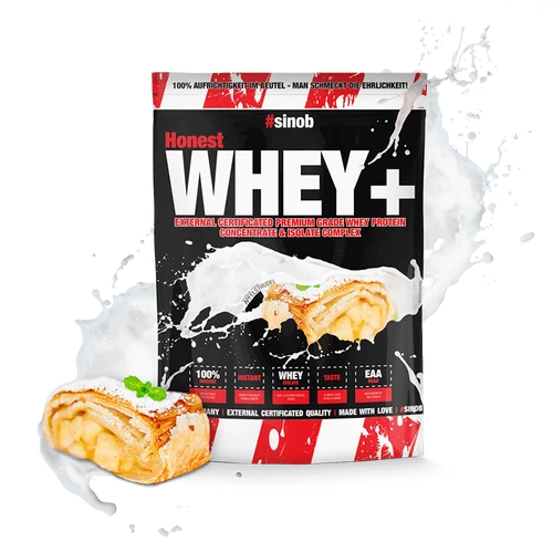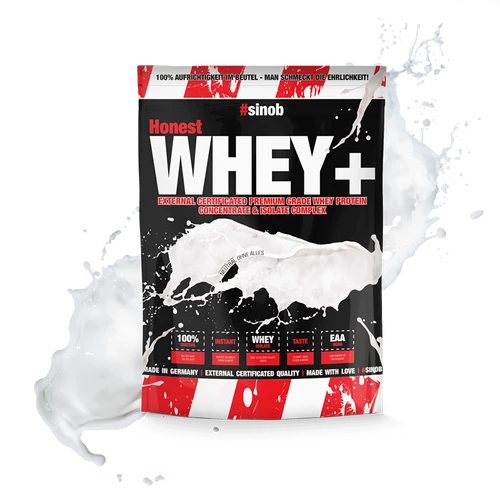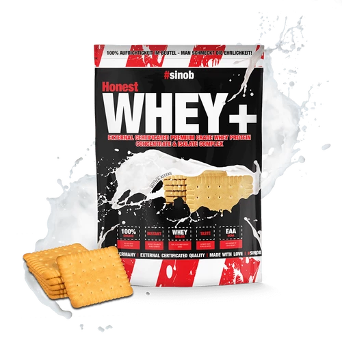 Durch einen hohen Anteil der essentiellen Aminosäure Leucin sorgt Whey dafür, dass die Muskelproteinsynthese (der Mechanismus, der für den Muskelaufbau sorgt) in hohen Mengen in eurem Körper vorhanden ist. Sinob bietet dir mit dem Honest Whey eine zu 100% ehrliche Wheymischung aus Isolat (garantiert 12,5%) und Konzentrat. Was drauf steht, ist auch drin.